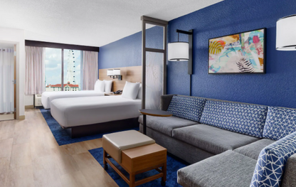 Located on International Drive, the Hyatt Place Orlando offers close proximity to top theme parks, restaurants, and more. Each of the spacious rooms comes with a Cozy Corner and sleeper sofa, so you will have plenty of room to stretch out and enjoy. At the Placery, located at the lobby bar, you’ll find a thoughtfully sourced & cleverly curated menu that has something for everyone. There is also a Grab & Go Market and an outdoor pool.